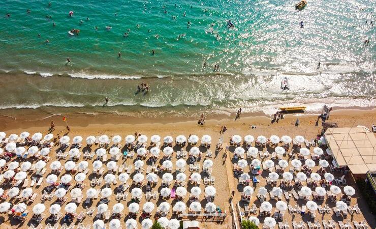 piesočnatá pláž priamo pred hotelom • ležadlá, slnečníky a osušky zdarma • vodné športy (za poplatok) • bar na pláži