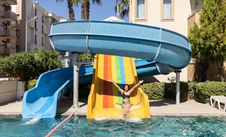 hlavná a vedľajšia budova • 212 izieb • reštaurácia • 3 a la carte reštaurácie (raz za pobyt zdarma, nutná rezervácia) • Wi-Fi (zdarma) • disco • bary • sauna • turecké kúpele • procedúry SPA centra za poplatok • biliard a bowling (za poplatok) • hlavný bazén • detský bazén • tobogany • miniklub • konferenčná miestnosť • za poplatok: minimarket • kaderníctvo