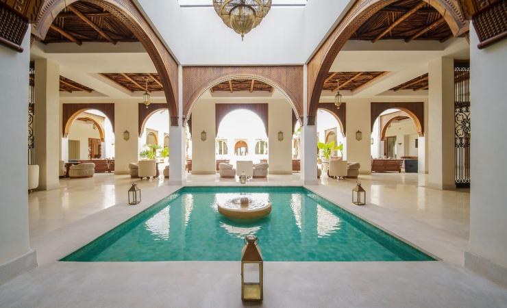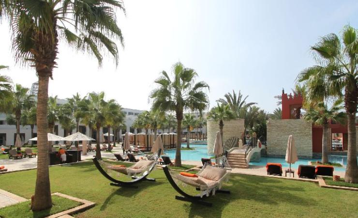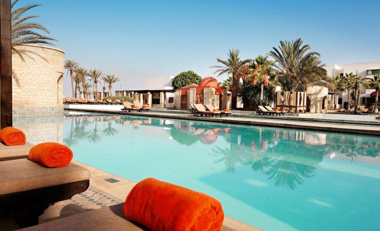 Elegantný únik do sveta luxusu pri Atlantiku - Sofitel Agadir Royal Bay Resort je miestom, kde sa orientálna elegancia prirodzene prelína s francúzskym štýlom. Tradičné prvky ako jemná Mashrabiya architektúra a pokojné záhrady vytvárajú autentickú atmosféru, zatiaľ čo moderný dizajn, komfort a priestrannosť ponúkajú dokonalé podmienky na oddych. Kompletne zrekonštruovaný 5-hviezdičkový rezort ponúka rozsiahlu bazénovú zónu s rozlohou 2 972 m², ako aj luxusné wellness centrum, ktoré uspokojí aj náročnejších hostí.