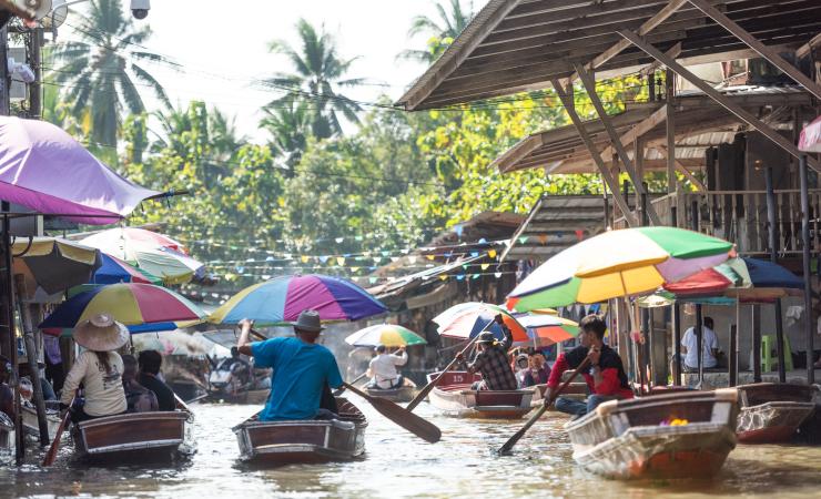 Skoro ráno opúšťame centrum Bangkoku a vydávame sa do okolia hlavného mesta. Hneď ráno nás čaká Talad Rom Hub (Maeklong Market), kde sa pozrieme, ako dokáže zmiznúť trhovisko, aby urobilo priestor prechádzajúcemu vlaku. Pokračujeme na najznámejší plávajúci trh Damnoen Saduak, fotogenický vír farieb a chutí. Ochutnáte kokosové palacinky či čerstvý rambutan alebo longan? Čo to je? Vysvetlíme si. Po dobrom obede pokračujeme do mesta Nakhon Pathom, kde navštívime najväčšiu stupu v Thajsku, gigantickú Phra Pathommachedi a prenikneme do tajov budhizmu. Podvečer sa vraciame do hlavného mesta a okúsime nočný život Bangkoku.
