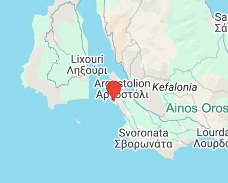 v zálive Paliostafida • stredisko Lassi • 7 km od medzinárodného letiska Kefalónia • 3km od hlavného mesta Argostoli