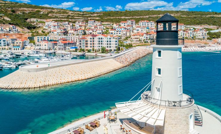 Luxusný 5-hviezdičkový hotel The Chedi Luštica Bay sa nachádza priamo v srdci prístavu, na krásnom pobreží Čiernej Hory. Toto luxusné sídlo je členom skupiny The Leading Hotels of The World. Predstavuje architektonický vrchol vznikajúcej rezidenčnej a dovolenkovej oblasti v zálive Luštica.