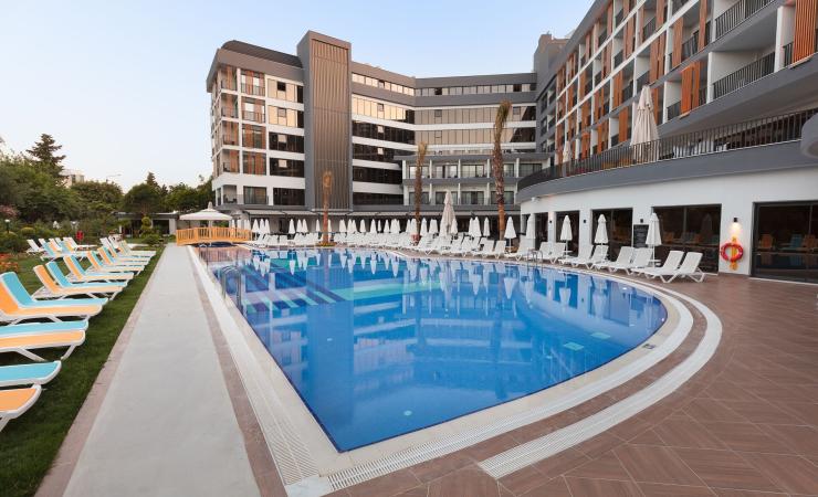 187 izieb • kompletne zrekonštruovaný v roku 2018 • hlavná budova s recepciou • samostatná budova priamo pri pláži • Wi-Fi v spoločných priestoroch (zdarma) • hlavná reštaurácia • 2 á la carte reštaurácie (jedna raz za pobyt bezplatne) • niekoľko barov • hlavný bazén • koncept Fine Dining • amfiteáter • soft animácie • za poplatok: obchody, kaderník, lekár, športy na pláži, služby SPA centra