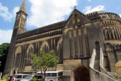 Stojí na mieste kde svojho času sídlilo trhovisko s otrokmi. Základný kameň katedrály bol položený v roku 1873, a teda v rovnakom roku, ako bol oficiálne zakázané obchodovanie s otrokmi. Na mieste, kde bol postavený stĺp, ku ktorému boli otroci pripútavaní a bičovaní stojí teraz symbolicky oltár. Otrokárstvo pripomínajú aj neďaleké malé cely, ktoré sú vybavené iba malým otvorom. V každej z nich muselo vydržať naraz až 75 otrokov, to znamená, že nemohli ani stáť vzpriamene. Cely sú dnes súčasťou St. Monica´s Guest House. Pred katedrálou stojí tiež pamätník otrokárstva znázorňujúci niekoľko osôb spojených reťazou.