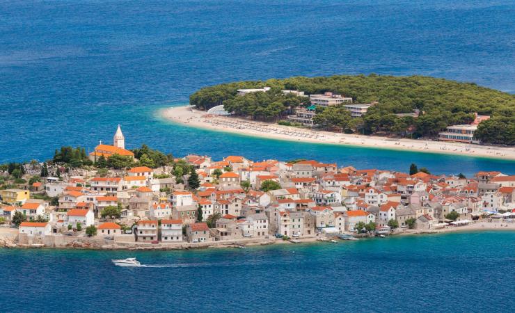 na zalesnenom polostrove • v bezprostrednej blízkosti Primoštenu • medzi Šibenikom 30 km a Splitom 50 km