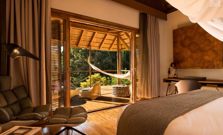 moderne zariadené bungalovy, suity a vily • s africkými prvkami • kúpeľňa s tropickou vonkajšou a vnútornou sprchou • klimatizácia • ventilátor • SAT TV • DVD • trezor • minibar (za poplatok) • rýchlovarná kanvica • terasa so sedením
