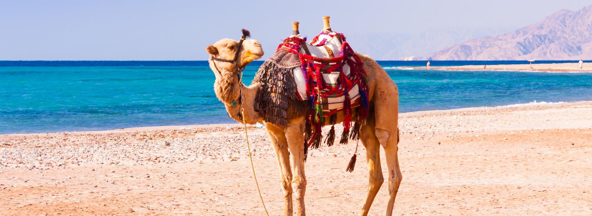 Dahab je menšie mesto na juhovýchodnom brehu Sinajského polostrova, neďaleko od letoviska Taba, ale aj Sharm el-Sheikh. Ako je to na Sinajskom polostrove zvykom, aj toto mestečko bolo v minulosti beduínskou dedinou. V súčasnosti má mesto samozrejme väčšiu rozlohu a inú podobu. Skladá sa z dvoch častí, pričom v prvej z nich - Assalahu sa nachádza  i dnes, pôvodná beduínska komunita spolu s turistami – dobrodruhmi. Južná časť mesta, tzv. Mashraba je plná moderných hotelových komplexov. Nájdete tu ubytovanie všetkých cenových kategórií, od luxusných hotelov po mládežnícke ubytovne. Dahab je cieľovou stanicou potápačov z celého sveta, najmä pre Blue Hole - obľúbené miesto pre potápanie a šnorchlovanie. Je to skalnatá kotlina s priamo klesajúcimi stenami. Miesto je ideálne aj pre ostatné vodné športy. Takmer vždy vejúce vetry vytvárajú skvelé podmienky windsurfingu a jachtingu. Unikátnym atribútom Dahabu sú plážové reštaurácie, ktoré poskytujú originálnu zmes hippie a beduínskeho spôsobu stolovania. Sú umiestnené blízko mora a miesto klasických stoličiek sa v nich môžete posadiť na pestrofarebné vankúšiky a jesť z nízkych stolíkov. V okolí je viacero možností safari zážitkov -  jazda na ťavách, jeepoch aj štvorkolkách púšťou, ku kaňonom či koralovým zátokám. Asi dve hodiny jazdy od mesta sa nachádza hora Sinaj a Kláštor svätej Kataríny.